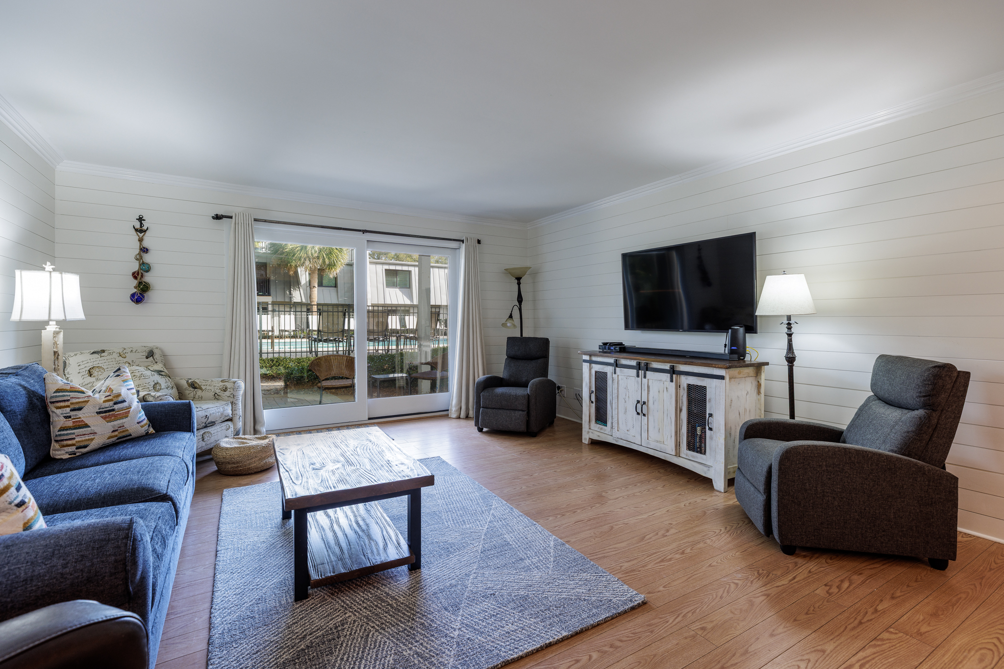 Inside, the villa welcomes you with an open floor plan designed for easy living. The spacious primary bedroom features a luxurious King bed and a private ensuite bathroom, while the second bedroom offers two comfortable Queen beds with its own full bathroom—ideal for families or couples traveling together. A full washer and dryer are included for added convenience during your stay. Natural light fills the living and dining areas, creating an inviting space to gather, unwind, and savor your Hilton Head getaway.